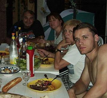 Leici Kocka, fremde Person, Marianna Stroichi-Kocka und Stefano Kocka im Winterquartier von Leici und Marianna bei Paris
