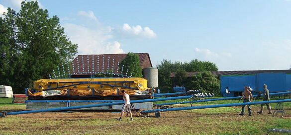 Die Masten wurden herabgelassen und werden verstaut und eine Stunde später rollen die ersten Transporte schon weiter in die nächste Gastspielstadt.