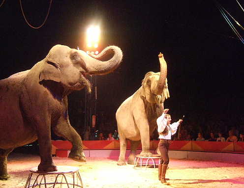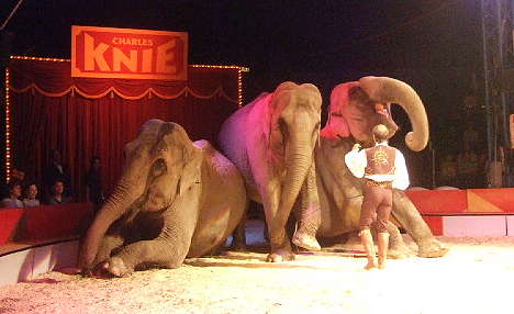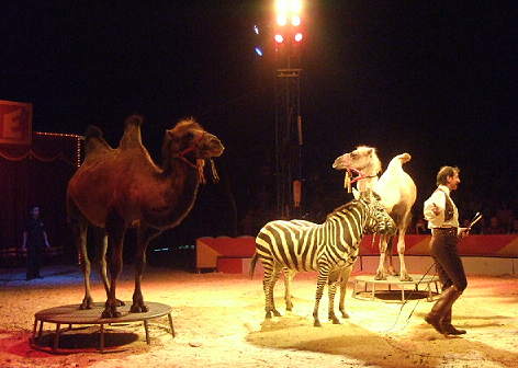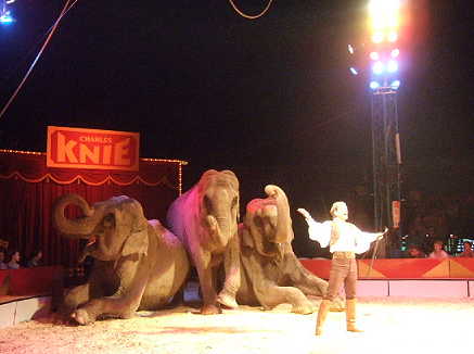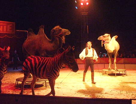 mit Elefanten, Kamelen, Zebras, Kängeruh, Emu, Seelöwen beim Circus Charles Knie oder zuvor mit Nashorn, Pferden und anderen Tieren beim Circus Barum. Überall besticht er durch einen Vorführstil grosser,