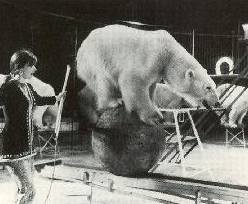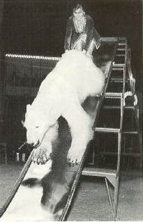 Eisbären beim Californischen National Circus 1967 (Carl Althoff) vorgeführt von Rosemarie Radnitz (heute Thevissen) und Siegfried Meier